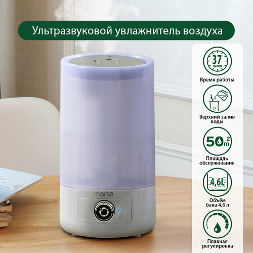Увлажнитель воздуха с антивирусной УФ-лампой MARTA MT-HF4700B белый/серебро
