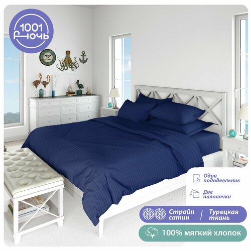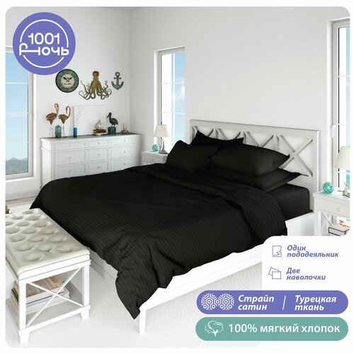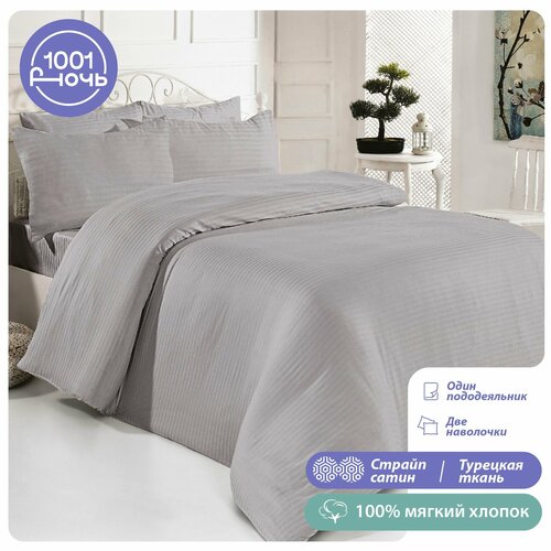 Комплект постельного белья 2-спальный страйп сатин как в отеле, пододеяльник 175х215 см, наволочки 50х70 см, 1001 ночь, 100% хлопок Турция