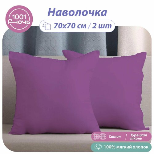 Наволочки 70х70, сиреневый сатин, премиум хлопок Турция, комплект из 2 штук "1001 Ночь"