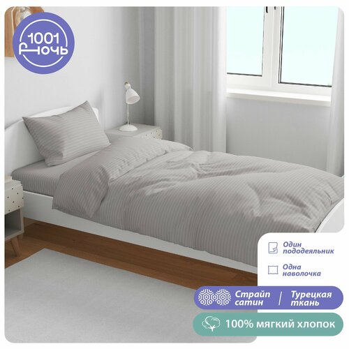 Комплект постельного белья 1,5-спальный страйп сатин как в отеле, пододеяльник 145х215 см, наволочки 50х70 см, 1001 ночь, 100% хлопок Турция