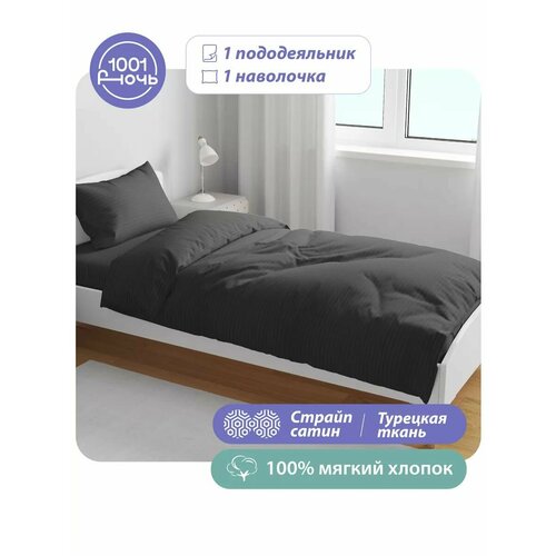 Комплект постельного белья 1,5-спальный страйп сатин темно-серый, 100% хлопок Турция