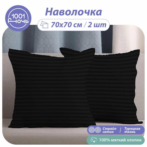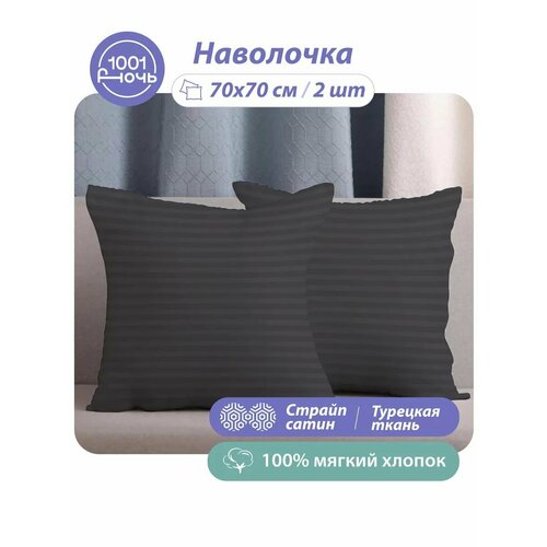 Наволочки 70х70 черный страйп сатин, комплект из 2 штук "1001 Ночь", хлопок Турция