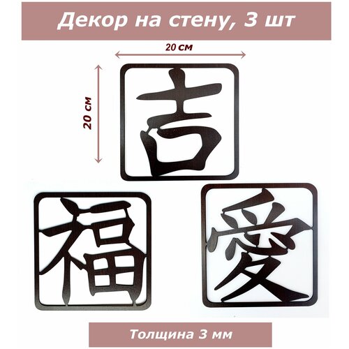 Декор деревянный для стен, декорация, панно интерьерное Иероглифы, 3 шт
