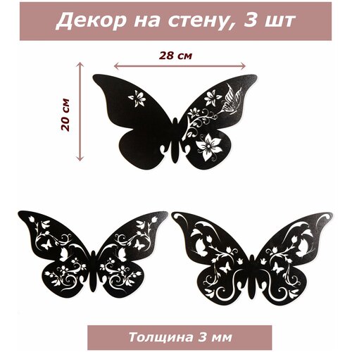 Декор деревянный для стен, декорация, панно интерьерное Бабочки, 3шт