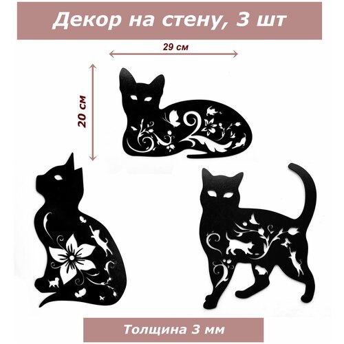 Декор деревянный для стен, декорация, панно интерьерное Кошки, 3 шт
