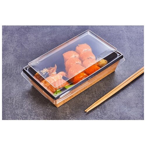 Салатник с плоской крышкой, черный, 20 x 12 x 5.5 см, 0.8 л, 10 шт.