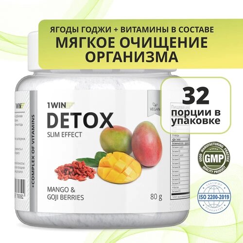 1WIN Detox Slim Effect Напиток дренажный Детокс Слим Эффект с Ягодами Годжи. Вкус Манго, 32 порции для похудения, против отеков