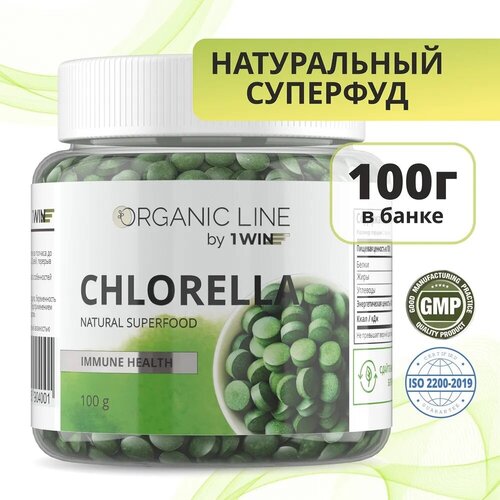 1WIN Хлорелла органическая натуральная, Chlorella прессованная в таблетках, Суперфуд 100 грамм