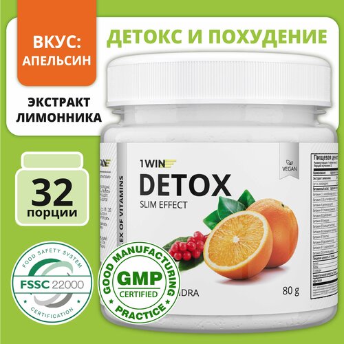 1WIN Detox Slim Effect / Напиток дренажный для похудения Детокс Слим с экстрактом Лимонника, Вкус Апельсин, 32 порции