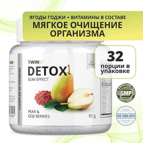 1WIN Detox Slim Effect / Напиток дренажный Детокс Слим Эффект с Ягодами Годжи. Вкус Груша, 32 порции для снижения веса и избавления от отеков