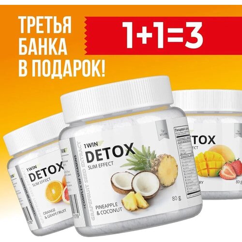 Детокс фитококтейль 1WIN Detox Slim Effect, Манго-Ананас, 32 порции, 3 шт.