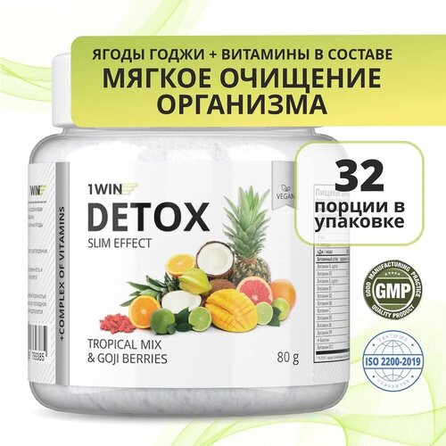 1WIN Detox Slim Effect / Напиток дренажный Детокс Слим Эффект с Ягодами Годжи. Вкус Тропический микс, 32 порци средство для похуденияи