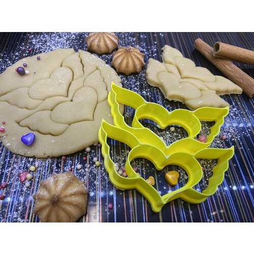 Вырубка для пряников и печенья. Формочка для теста Сердечки с крылышками двойные.