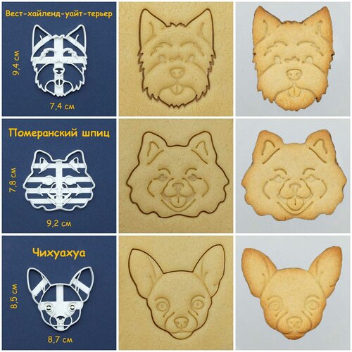 "Собаки: Померанский шпиц, Чихуахуа, Вест-хайленд-уайт-терьер" формочки для печенья, пряников, трафареты для вырезания фигурного печенья 3 шт
