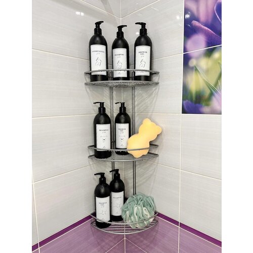 Полка угловая в ванную комнату 3 яруса овальной формы, угловая полка, угловая полка навесная