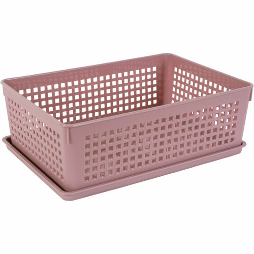 Корзина с крышкой, 310х310х150 мм, 12 л, полипропилен, цвет розовый