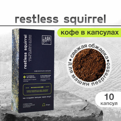 Кофе в капсулах 9 BAR coffee & roasters / 9 БАР кофе, Restless Squirrel, робуста 85%, арабика 15%, 10 шт