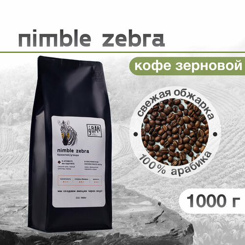 Кофе в зернах 9 BAR coffee & roasters / 9 БАР кофе, Бразилия/Уганда Nimble Zebra, свежеобжаренный, арабика/робуста, 1 кг