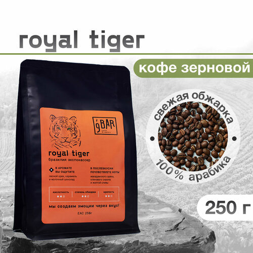 Кофе в зернах 9 BAR coffee & roasters / 9 БАР кофе, Бразилия Экспокассер Royal Tiger, свежеобжаренный, арабика, 250 г