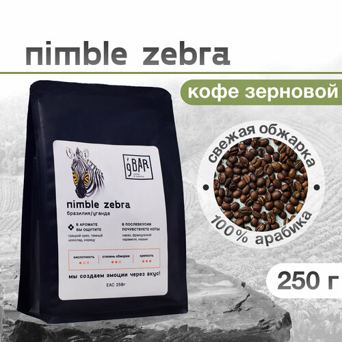 Кофе в зернах 9 BAR coffee & roasters / 9 БАР кофе, Бразилия/Уганда Nimble Zebra, свежеобжаренный, арабика/робуста, 250 г