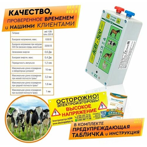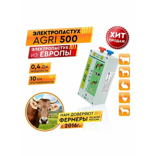 Электропастух AGRI 500, 6Дж, 12В Генератор импульсов для Коров Крс Овец Коз Свиней Медведей Телят Собак Лошадей