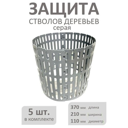 Защита стволов деревьев AKAPLAST серая/ Защита растений от косы, косилки, грызунов. Набор 5 шт, 37х21