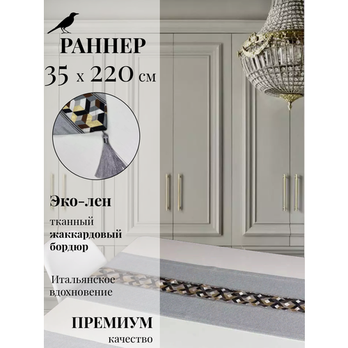 Раннер с уголком для стола ALLODOLA Lago di Garda 35х140 см с жаккардовым бордюром Итальянское вдохновение