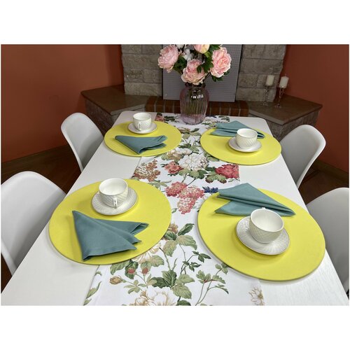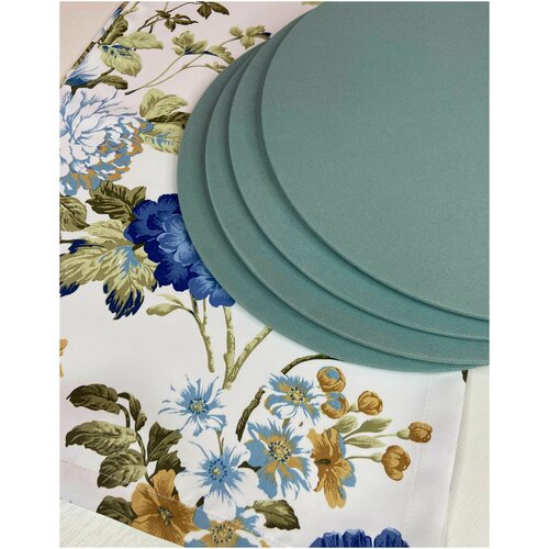 Набор для сервировки стола ALLODOLA PEONIA BLU Дорожка 40х140 см 1 шт + Салфетки круглые Placemat MENTOLO d36 см - 4 шт.