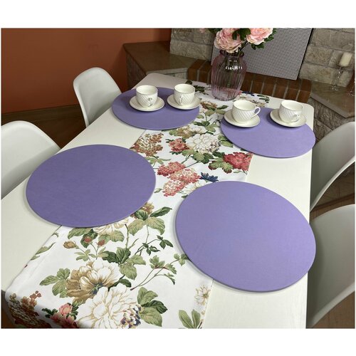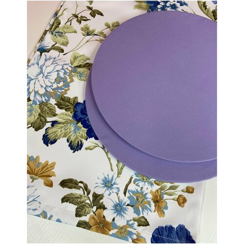 Набор для сервировки стола ALLODOLA PEONIA BLU Дорожка 40х140 см 1 шт + Салфетки круглые Placemat LAVANDA d36 см - 4 шт.