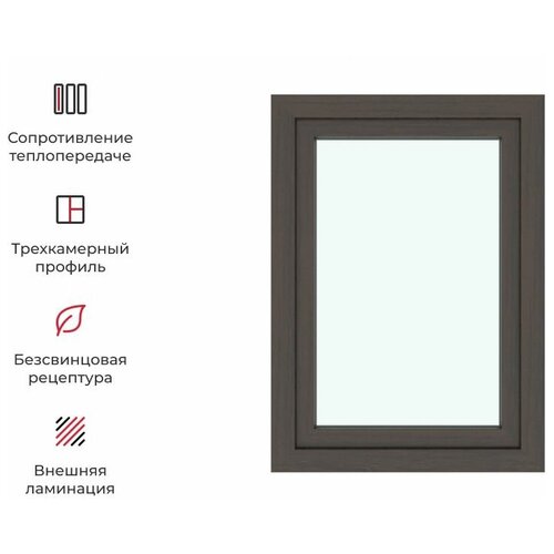 Окно ПВХ глухое КВЕ 58 глухое 100х80 двухкамерный стеклопакет цвет шоколадно-коричневый