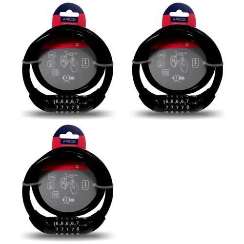 Замок тросовый велосипедный Apecs PD-83-65CM-CODE Кодовый (комплект 3 штуки)