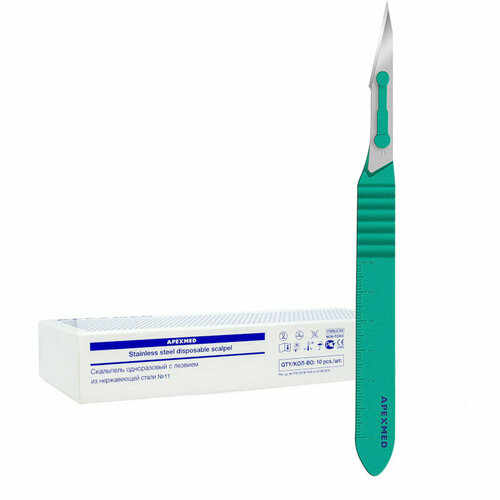 Скальпель одноразовый APEXMED с лезвием из нержавеющей стали стерильный (№11, 10 шт)