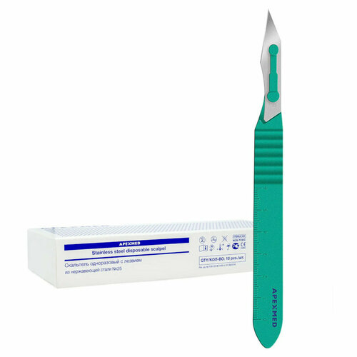 Скальпель одноразовый APEXMED с лезвием из нержавеющей стали стерильный (№25, 10 шт)