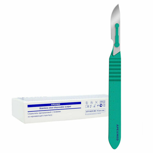 Скальпель одноразовый APEXMED с лезвием из нержавеющей стали стерильный (№22, 10 шт)