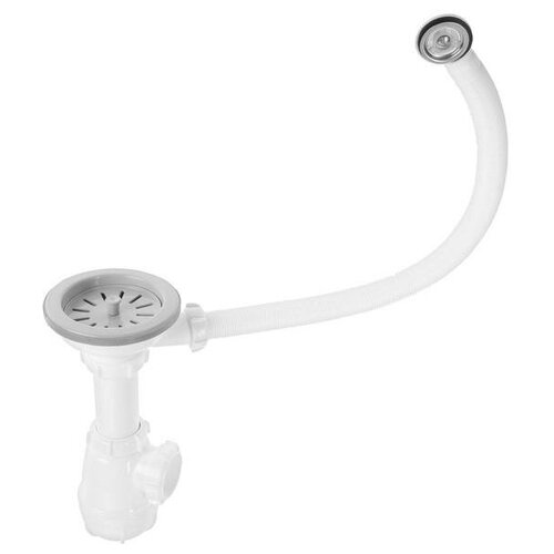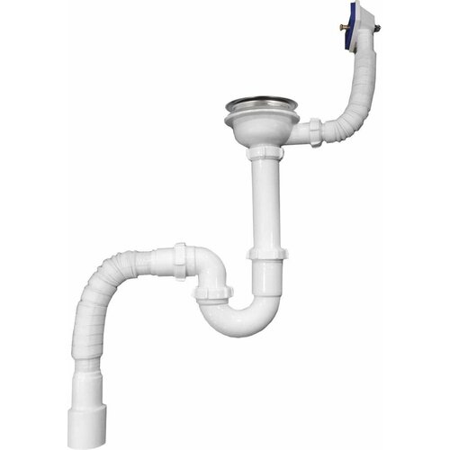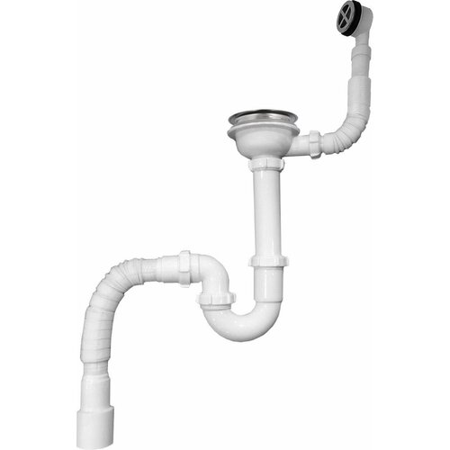 Aquant Сифон для мойки Aquant, 3 1/2" х 40 мм, с переливом, белый