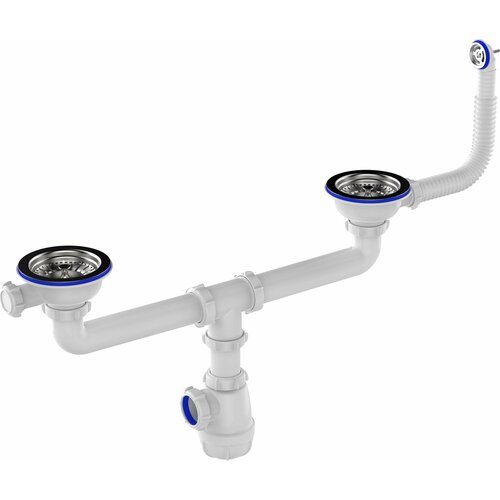 Сифон для мойки 3 1/2"х40 сдвоенный (с двумя чашами) с круглым переливом Aquant D0142-14-MR
