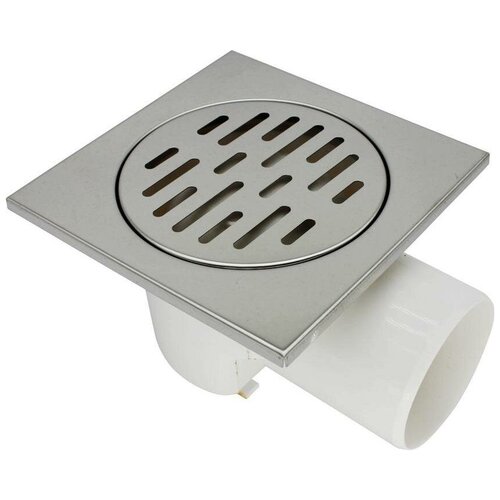 Трап Aquant д/душа 150х150мм квадр. горизонтальный, с нерж. решёткой, выпуск 75 мм. ST3215-21-MR