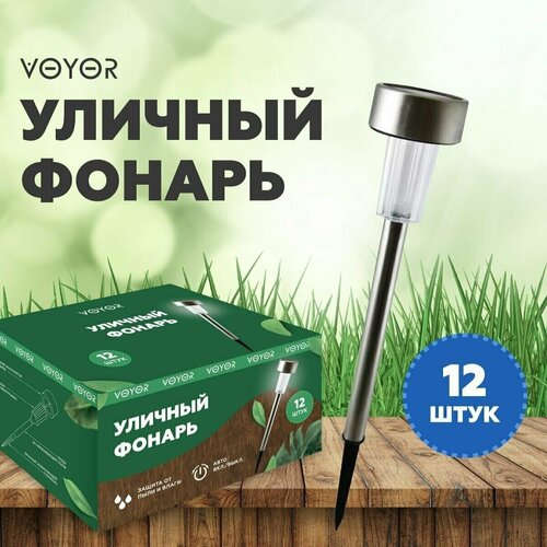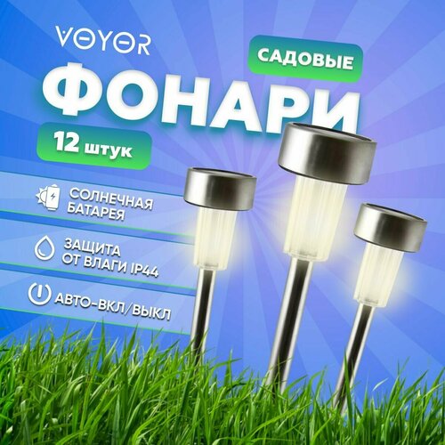 Уличный светильник на солнечной батарее с датчиком света садовый, грунтовый / ландшафтный светодиодный фонарь для декора, украшения, освещения дачи и огорода / набор 12 штук