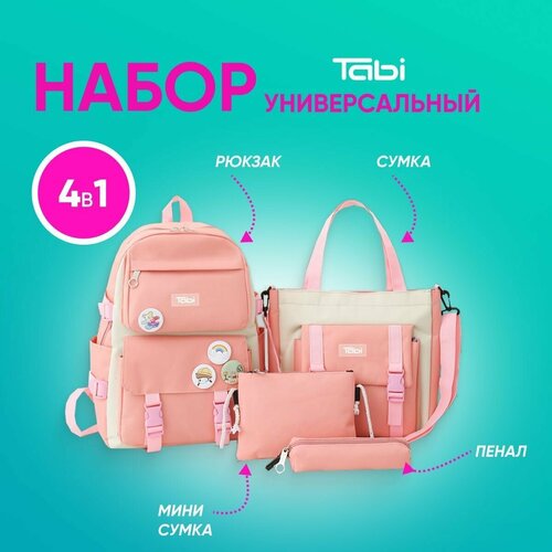 Рюкзак школьный для девочек, детский, спортивный, городской, модный рюкзак для девочек, вместительный с карманами , набор 4в1