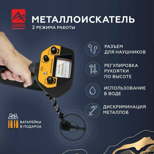 Металлоискатель ARRIS MD 4030P (PRO), грунтовой, металлодетектор, для золота, монет, металла, электронный на батарейках