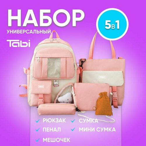Рюкзак школьный для девочек, детский, спортивный, городской, модный, вместительный с карманами , набор 5в1