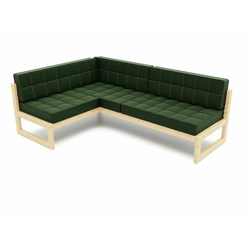 Садовый диван угловой Arsko Стоун-У-С левый зеленый-сосна, велюр, массив дерева, скандинавский лофт, садовый, для бани