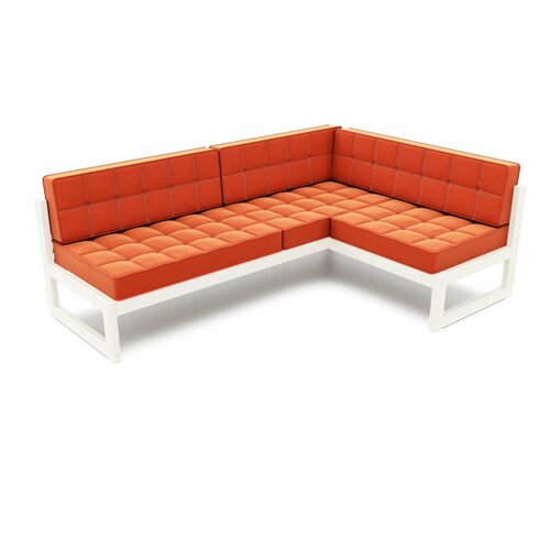 Угловой садовый диван СЕГА-У-С правый, оранжевый-беленый дуб, велюр, массив дерева, офисный, садовый, для кафе и бара
