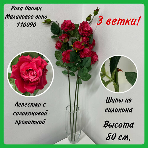 Ветка Роза искусственная силиконовая Наоми Малиновая