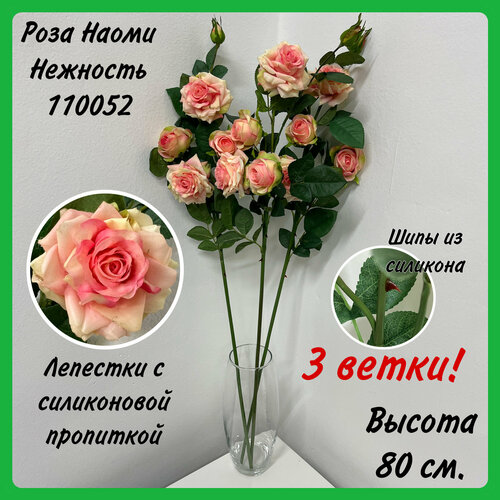 Ветка Роза искусственная силиконовая Наоми Нежность