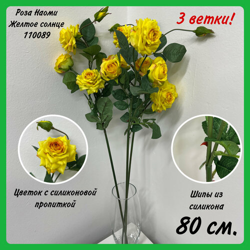 Ветка Роза искусственная силиконовая Наоми Желтое солнце