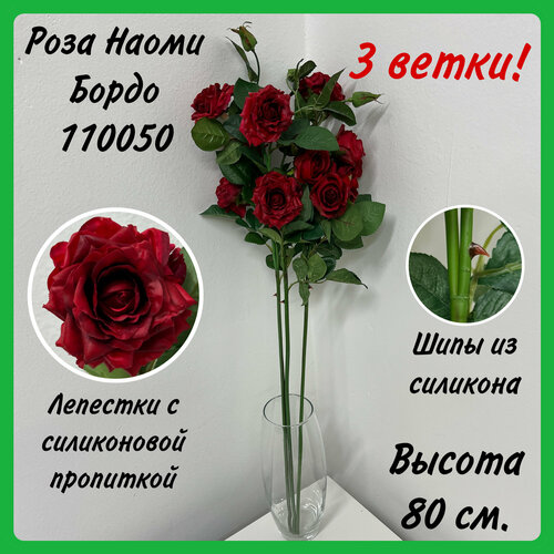 Ветка Роза искусственная силиконовая Наоми Бордо