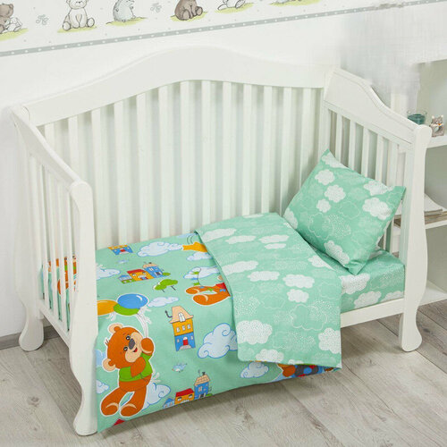 Детское постельное белье ясельное бязь Облачко зеленое