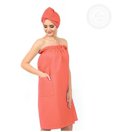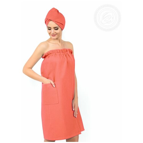 Набор для бани и сауны (женский) - Коралловый - вафельный, АртПостель, парео+чалма