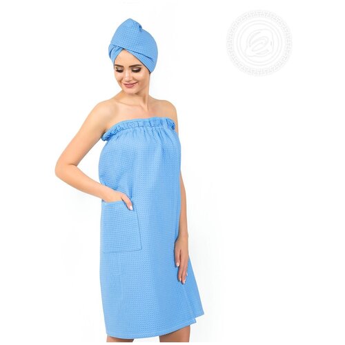 Набор для бани и сауны (женский) - Голубой - вафельный, АртПостель, парео+чалма